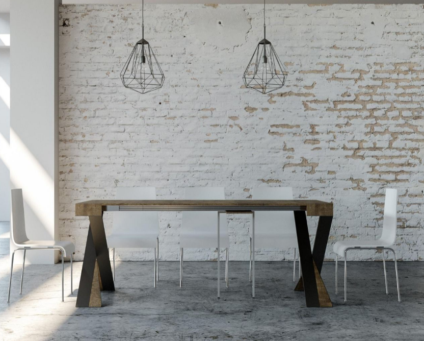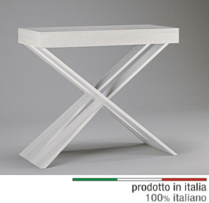 CONSOLLE DIAGO SMALL Diago rappresenta la soluzione ideale per chi desidera il meglio per la propria casa. Una consolle allungabile di pregiata fattura, pratica, elegante, futuristica e dal design particolarmente accattivante. Si presenta con una struttura in ferro a "X" ed una solida e robusta piana. Perfetta per essere inserita in ambienti classici o moderni. Allungabile fino a 2 metri. Il piano e le allunghe, nelle finiture bianco frassino, quercia natura, noce, marmo e cemento sono in microparticelle di legno rivestito.