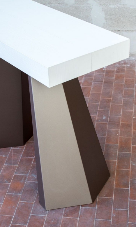 CONSOLLE DIAMANTE Una consolle estremamente stabile, robusta, elegante e dal design originale. Dalle linee pulite e di grande impatto, i materiali impiegati si fondono in un'armoniosa combinazione. L'ampio e solido telaio in metallo, costituisce la struttura portante della consolle stessa. Realizzata interamente in Italia mediante l'utilizzo di materiali 100% italiani.