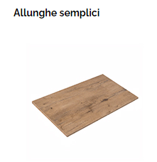 Caratteristiche tecniche: Il piano e le allunghe, nelle finiture bianco frassino, quercia natura, cemento, noce, marmo sono in microparticelle di legno rivestito, mentre il piano in abete natura e abete tinto è in legno listellare. I due sistemi di supporto (le gambe poste all'estremità quando la consolle è totalmente aperta) possono essere assemblati assieme per formare un carrello porta allunghe.