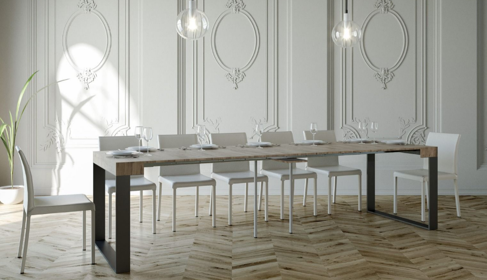 La consolle Elettra non è solo un elemento d'arredo. Pratica e funzionale grazie alla possibilità di allungarla fino a 196 cm. si trasforma rapidamente in un tavolo multifunzione, un tavolo da pranzo, un tavolo da lavoro, un tavolo per il soggiorno. La consolle, da chiusa può essere collocata facilmente nel tuo ingresso o in ogni angolo della tua casa. Facilmente trasportabile si adatta benissimo in ogni spazio.
