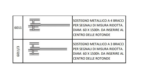Sostegno Metallico a 3 o 4 Bracci per Segnali di Misura Ridotta da Inserire al Centro delle Rotonde Diam.60 X 1500 h