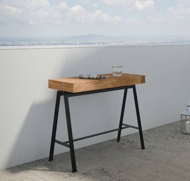 Iris, una consolle allungabile idale per arredare con gusto e stile ogni ambiente esterno ed interno. Dotata di solidità e stabilità uniche, Iris è perfetta per far accomodare in totale tranquillità fino a 14 persone. In pochi e semplici gesti è infatti possibile trasformarla in un comodo e pratico tavolo da pranzo. Made in Italy Una struttura in metallo verniciato antracite avorato con taglio al laser, garantisce una robustezza mai vista prima. I due sistemi di supporto (le gambe poste all'estremità quando la consolle è totalmente aperta) possono essere assemblati assieme per formare un carrello porta allunghe (esclusivamente con le allunghe in Abete semplici). Il legno con il quale è stata costruita la consolle (abete) è massello 100% naturale. Eventuali piccole imperfezioni sono da ritenersi caratteristiche intrinseche del materiale stesso e della lavorazione artigianale, e quindi perfettamente normali; anche il colore, nel tempo, se esposto alle intemperie o esposto alla luce diretta del sole, potrebbe subire leggere variazioni, anche queste variazioni sono assolutamente normali. E' possibile che si verifichi una leggera discrepanza tra il colore del piano e quella delle allunghe, dovuta al fatto che il piano è sempre esposto alla luce del sole, mentre le allunghe vengono in genere utilizzate meno di frequente. E' possibile che una leggera differenza si verifichi anche a contatto con la luce durante la permanenza nel nostro magazzino.
