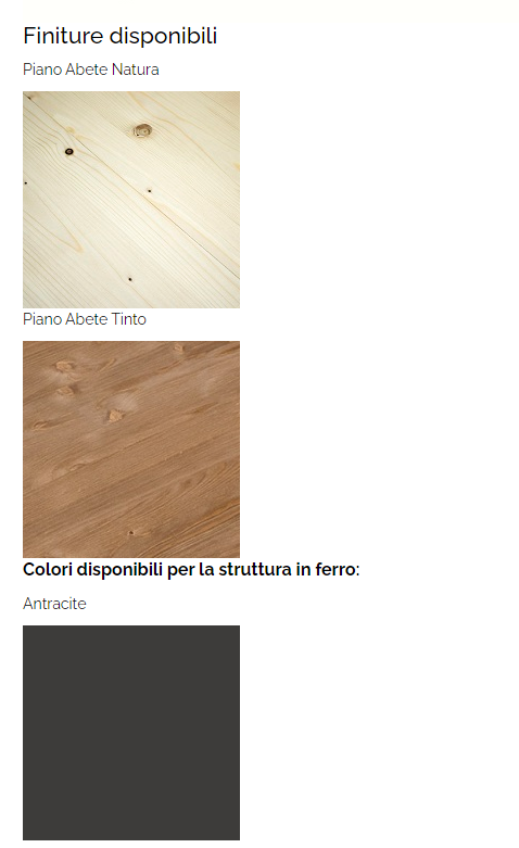 Caratteristiche tecniche: Piano in legno listellare d'abete lavorazione tipo folding (adatto per l'esterno) Allunghe in listellare d'abete semplici (adatte per l'esterno)