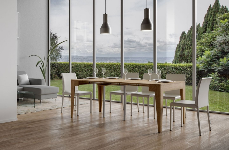 ISOTTA SMALL è la versione della consolle con tre allunghe. Puoi ospitare comodamente fino a 10 ospiti. Allungabile progressivamente. Realizzata in pannelli di nobilitato 100 % made in Italy. Guide in alluminio, struttura resistente e stabile