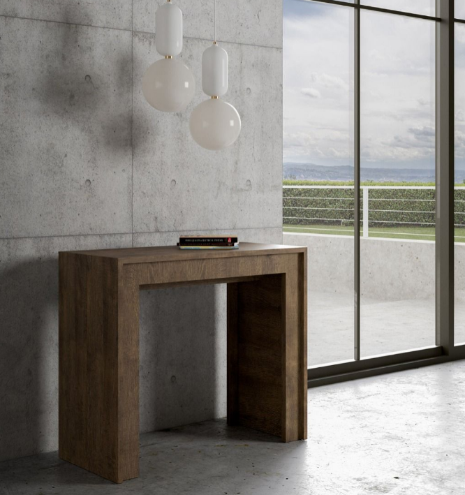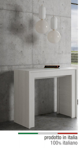 La consolle MIA è estremamente stabile e robusta, pronta per ospitare tutti i tuoi ospiti in totale relax. Ha il supporto centrale in legno, della stessa finitura della consolle; lo stesso ruota dando la possibilità di non interferire con le gambe delle persone che vi si siedono in prossimità. La consolle Mia è particolarmente robusta e stabile grazie all'ampia area di appoggio a terra. La consolle Mia può in un attimo trasformarsi in un piano di 3,02 metri nelle occasioni più importanti grazie alle pratiche 5 allunghe fornite in dotazione. Consolle realizzata in nobilitato melaminico. Possibilità di scelta tra due finiture, bianco frassino e noce. Realizzata interamente in Italia mediante l'utilizzo di materiali 100% italiani. Composta essenzialmente da due parti: il piano superiore allungabile con sistema di guide in alluminio ad elevata scorrevolezza. Spazioso e robusto. N.B. E' POSSIBILE RICEVERE IL PRODOTTO GIA' MONTATO CON SPESA AGGIUNTIVA DI € 80,00 + IVA